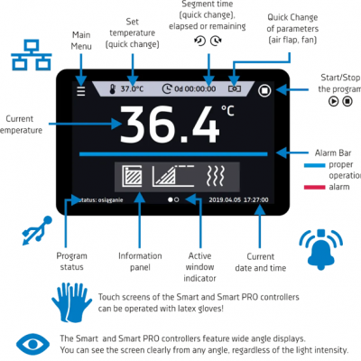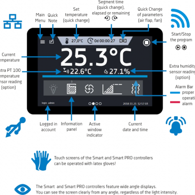 Alle POL-EKO apparatuur zijn standaard uitgevoerd met een zeer gebruiksvriendelijke SMART touchscreen controller.